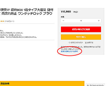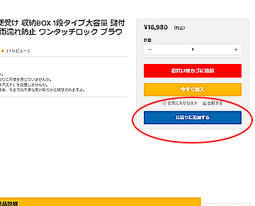 - お取引き希望の商品や割引価格で購入したい商品のページから青ボタンの「見積に追加する」をクリックする。複数ある場合は同じ操作を繰り返して追加していきます。