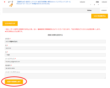 - 見積り依頼する商品は、「見積依頼リストを参照」テキストをクリックして確認できます。