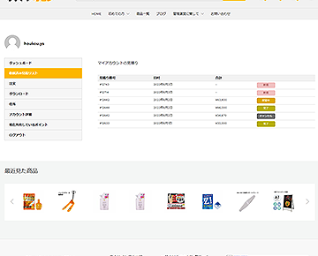 - ログインしたページでは、購入履歴の確認や配送状況の追跡などを確認することができます。