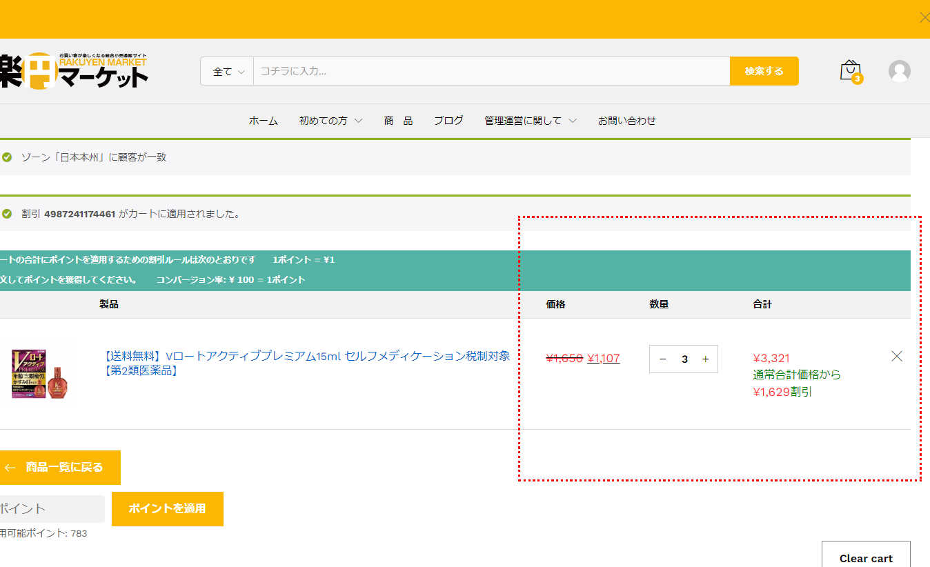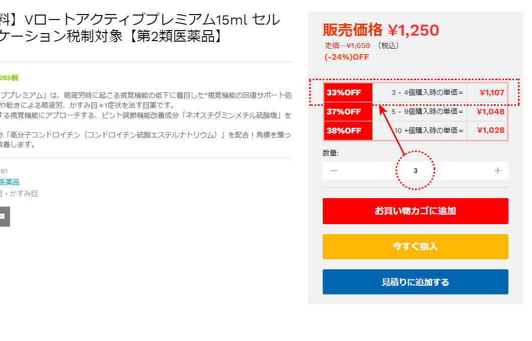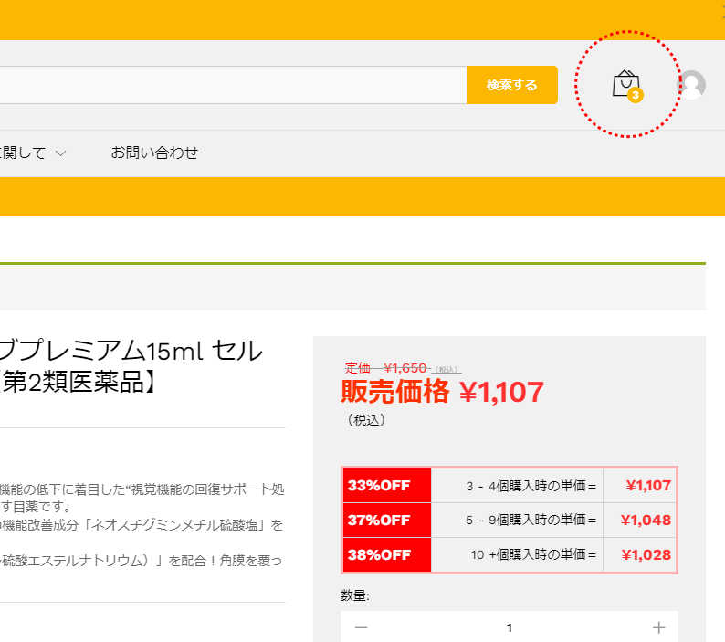 - この時点で購入個数を減らしたり、増やしたりすることもできます。その際も、決められた個数による割引率が自動的に適用されて、確認もできるので心配する必要はありません。