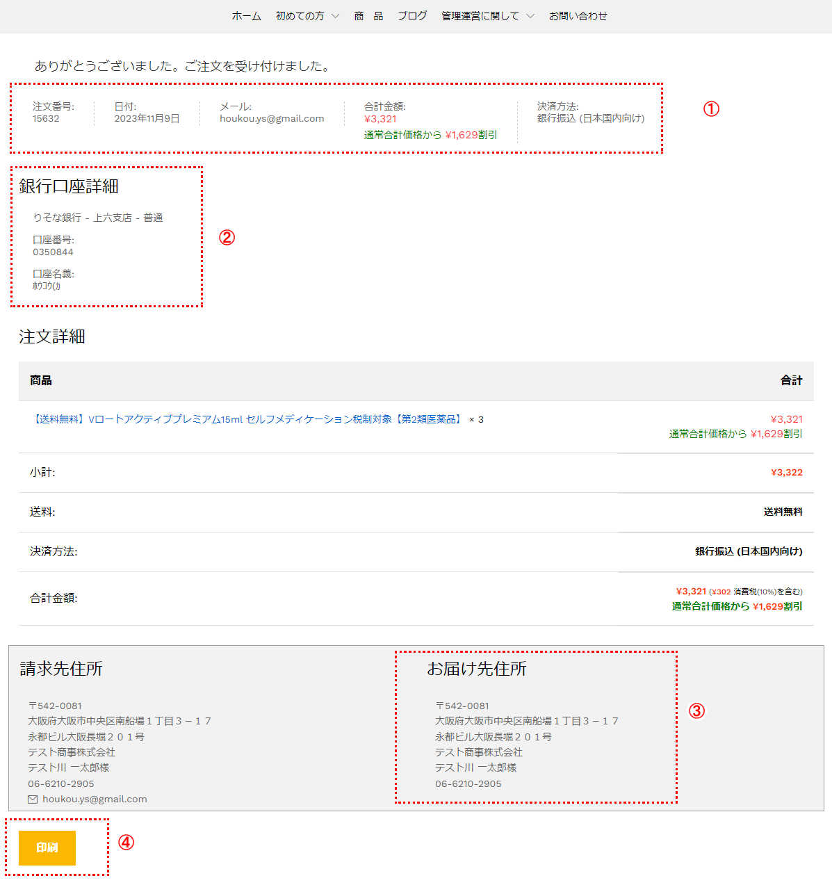 - 領収書が必要な方は、④「印刷」ボタンを押して納品書兼領収書を印刷することができます。