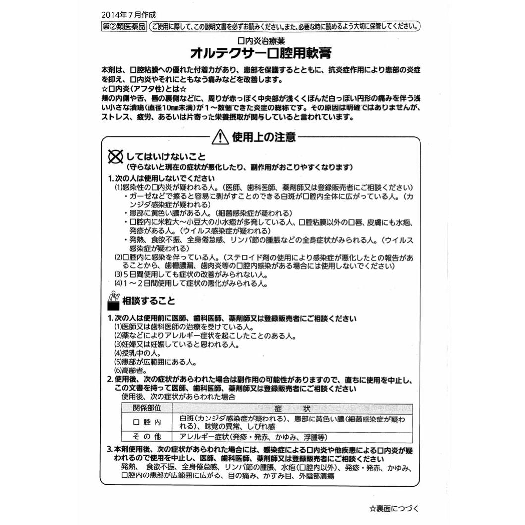 【オルテクサー 口腔用軟膏セルフメディケーション税制対象の商品詳細】