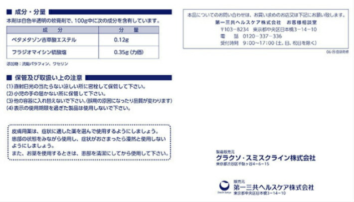 本剤は白色半透明の軟膏剤で、100g中に次の成分を含有しています。