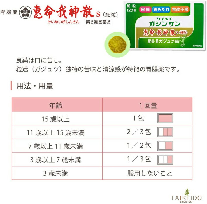 恵命我神散S<細粒>は、胃の働きを活発にし、胆汁分泌を促進し脂肪の消化をたかめ